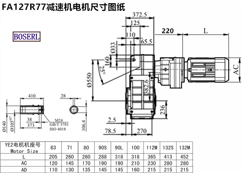 FA127R77DM71S4減速機電動機安裝尺寸圖紙